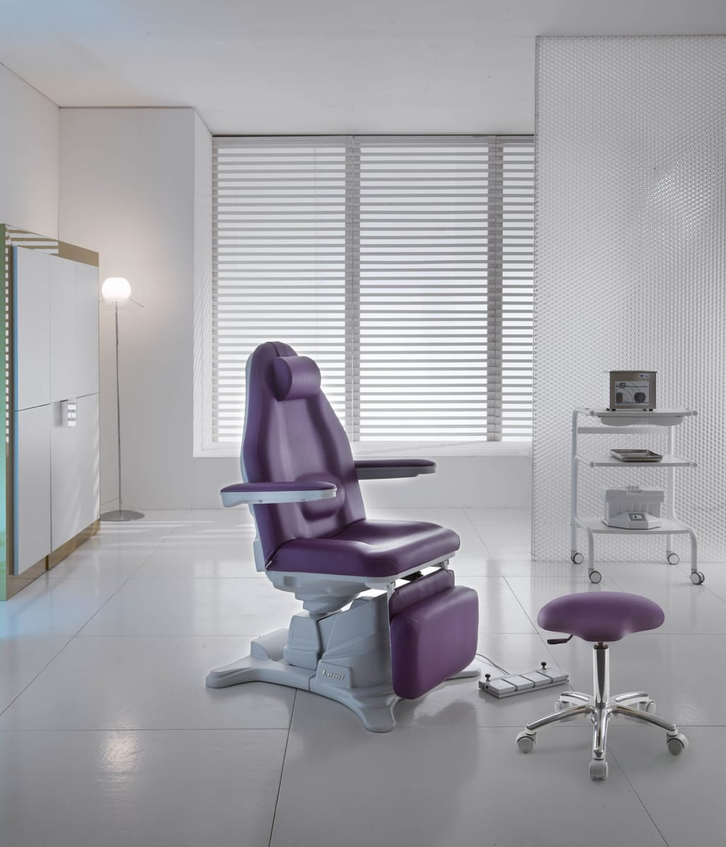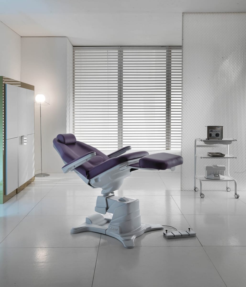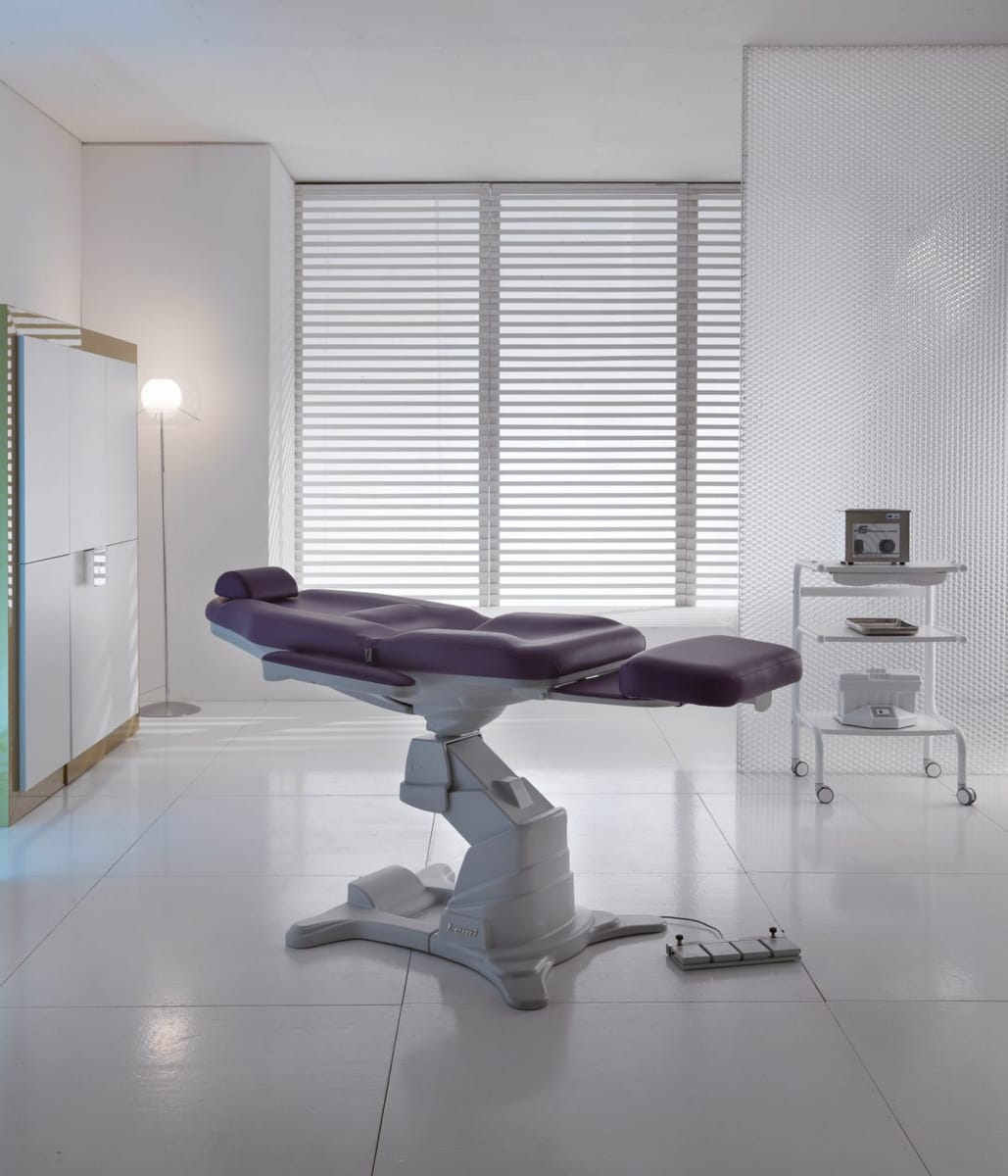 Многофункционална естетична електрическа кушетка Dreamed подходяща за естетични, дерматологични, стоматологични и офталмологични прегледи. Благодарение на минималната и максимална си височина столът осигурява максимален комфорт на пациента и практикуващия лекар. Формата на гърба е специално проектирана за максимлана близост до лицето на пациента. Размерът на основата е подходящ и за малки стаи.